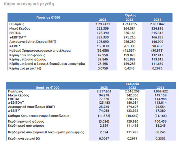 κέρδη ανήλθαν στα 213,3εκ ευρώ το 2023, έναντι 364,6εκ ευρώ