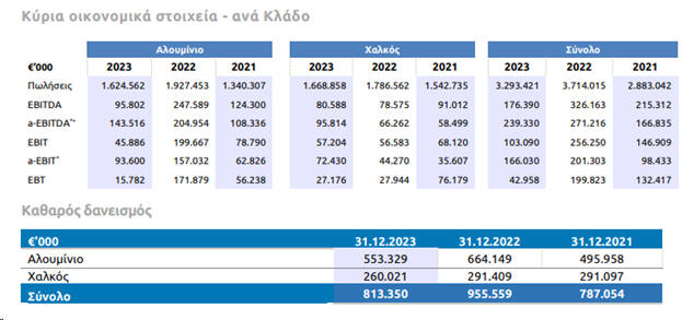 καθαρός δανεισμός για τον Κλάδο Χαλκού ανήλθε στα 260,1 εκ.