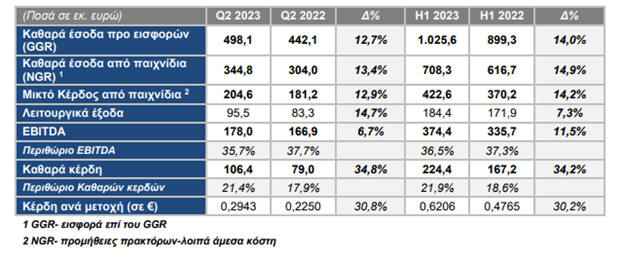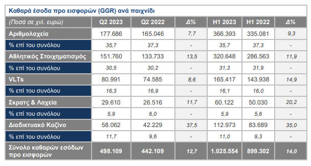 μικτό κέρδος από παιχνίδια το β’ τρίμηνο 2023 ανήλθε στα