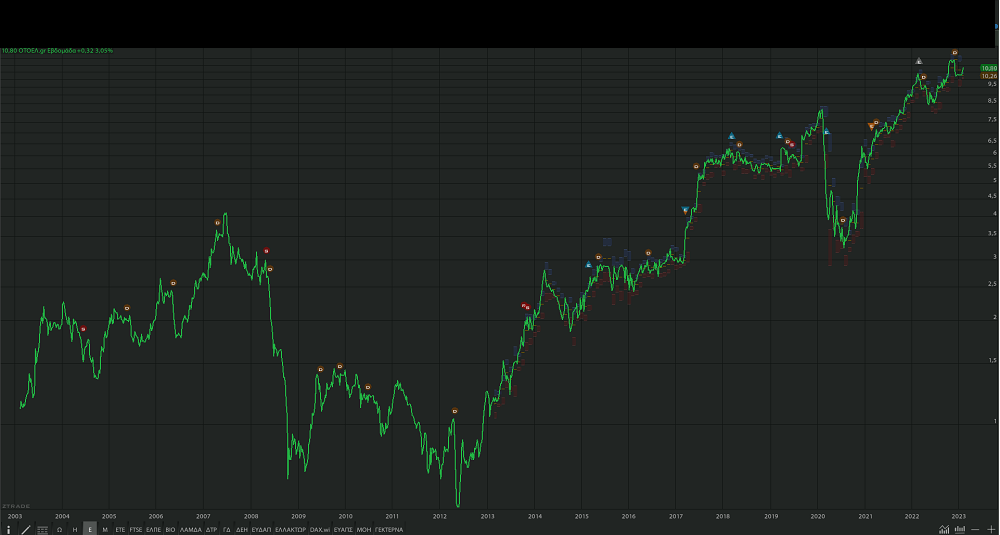 σήμερα στα 10,8 ευρώ, έχοντας όλα αυτά τα χρόνια δώσει και