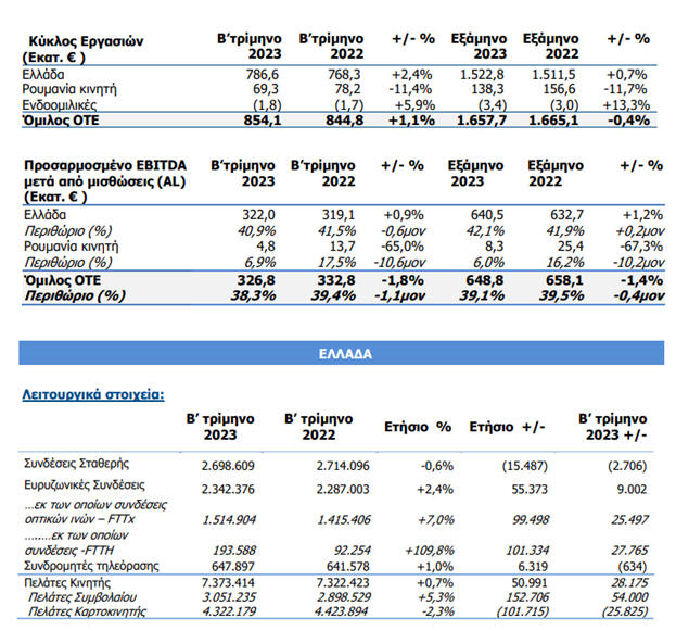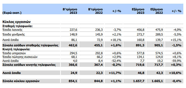 τρίμηνο του 2023, τα ενοποιημένα έσοδα του Ομίλου OTE