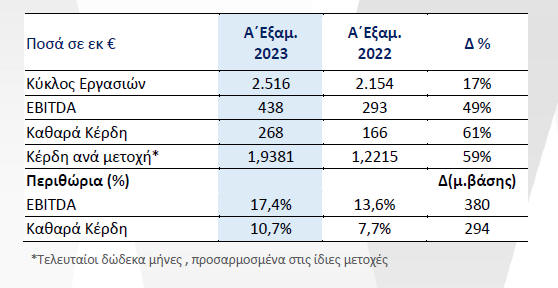 (EBITDA) σημείωσαν σημαντική αύξηση, κατά 49% στα 438εκ ευρώ