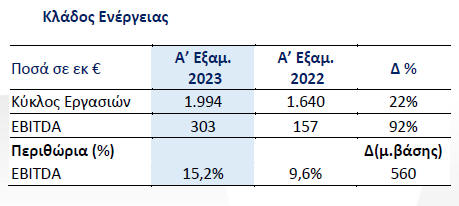 της ενέργειας που έφερε στο 6μηνο το 69% του EBITDA έναντι
