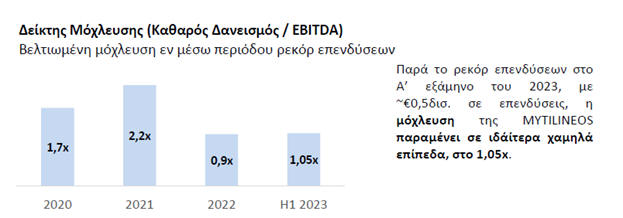 προσαρμοσμένο Net Debt/EBITDA διαμορφώθηκε στο 1,05x,