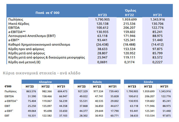 Κλάδο Χαλκού ανήλθε στα 276,0 εκ. ευρώ στις 30.06.2023,