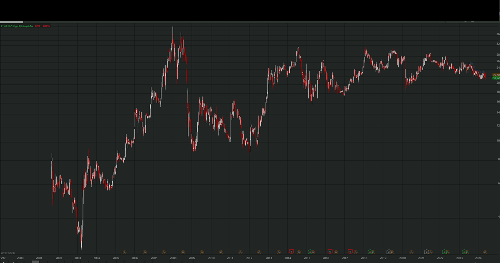 μετοχή βρίσκεται αυτή τη στιγμή στα 25 ευρώ, πριν μερικές