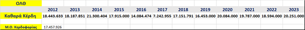 23,2εκ ευρώ στο τέλος του 2023 Vs 23,4εκ ευρώ στο τέλος του