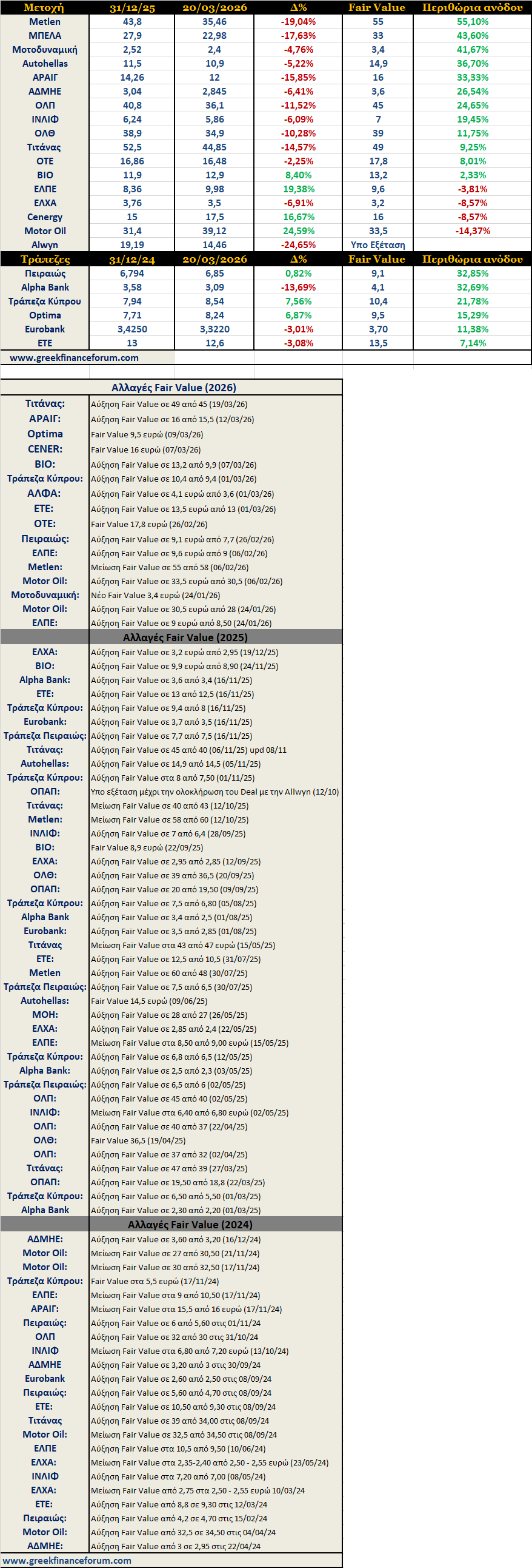 Τα Fair Value, οι αποδόσεις του 2026 και τα περιθώρια ανόδου upd