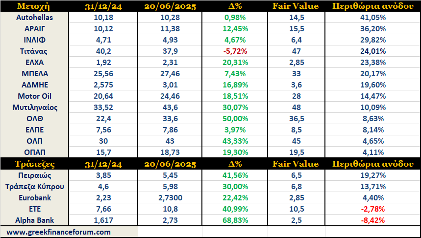 Σχόλιο 16/06/25 - update τιμών με βάση τα κλεισίματα στις