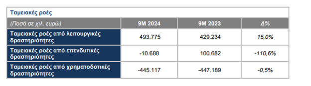 €1.648,3εκ. έναντι €1.506,5εκ. το εννεάμηνο 2023, αυξημένα