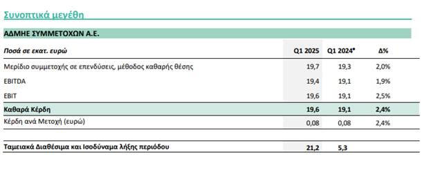 ΣΥΜΜΕΤΟΧΩΝ Α.Ε. αντικατοπτρίζουν τη συμμετοχή της κατά 51%