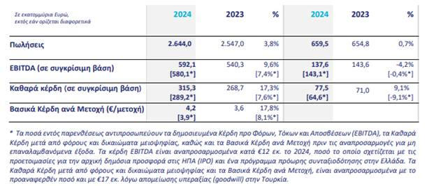 Οι πωλήσεις του Ομίλου το 2024 ανήλθαν συνολικά σε
