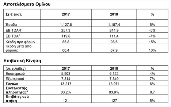 εκατ. το 2017. Σε επίπεδο αποτελεσμάτων προ φόρων, ο Όμιλος