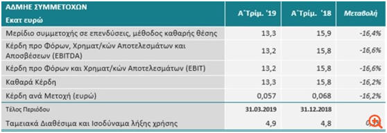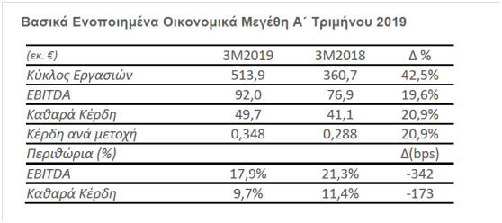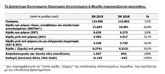 κέρδη παρουσίασαν άνοδο κατά 13,65%, στα 32,54 εκατ. ευρώ