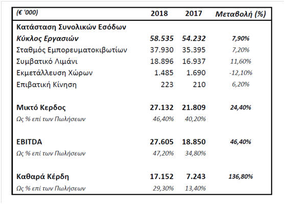 αποσβέσεων, (EBITDA) εμφάνισαν αύξηση κατά 18,49%, στα 46,99