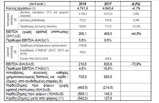 οικονομικά αποτελέσματά του για τη χρήση του 2018, τη