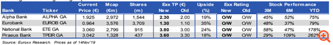 Αναφορικά με τις τιμές στόχου των τραπεζών είναι οι ακόλουθες: