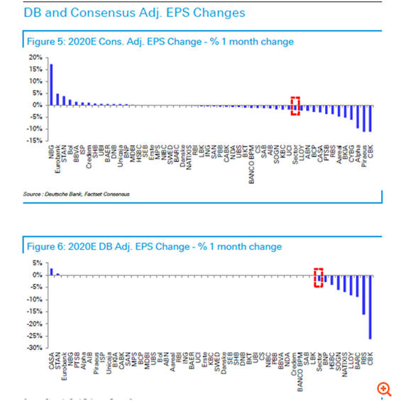 Eurobank: 1,30 ευρώ (περιθώρια ανόδου περίπου 57%) Εθνική Τράπεζα: 3,90 ευρώ (περιθώρια ανόδου περίπου 50%) Alpha Bank: 1,50 ευρώ (χαμηλότερα περίπου 12% από τις τρέχουσες τιμές) & Τράπεζα Πειραιώς: 2,40 ευρώ (περίπου 25% χαμηλότερα από τις τρέχουσες τιμές). |
