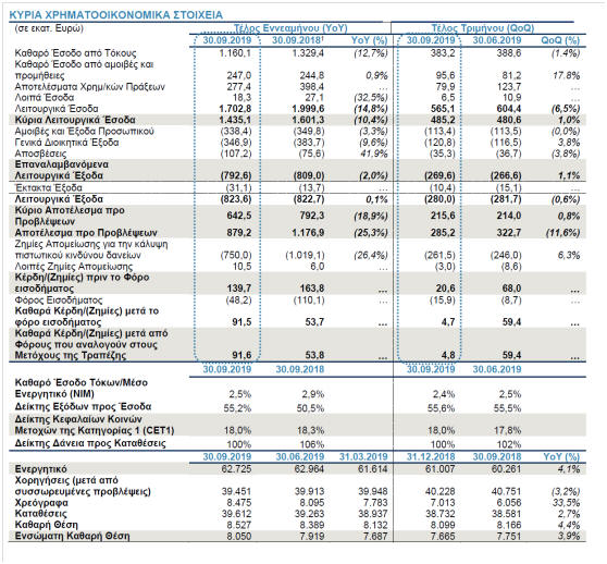 PAPERPACK: Κέρδη 1,35 εκατ. ευρώ στο 9μηνο Στο ποσό των 14.156 χιλ. ευρώ ανήλθαν οι πωλήσεις της εταιρείας PAPERPACK ΑΒΕΕ, στο εννεάμηνο του 2019 έναντι 12.469 χιλ. ευρώ την αντίστοιχη περυσινή περίοδο σημειώνοντας αύξηση 13,53%.Το μεικτό περιθώριο διαμορφώθηκε στο 30,67% έναντι 26,36% την αντίστοιχη περίοδο της προηγούμενης χρήσης.Τα λειτουργικά κέρδη (EBITDA) της εταιρείας διαμορφώθηκαν σε 3.378 χιλ. ευρώ έναντι 1.756 χιλ. ευρώ την αντίστοιχη περυσινή περίοδο. Η αύξηση οφείλεται κατά κύριο λόγο στην αύξηση του κύκλου εργασιών αλλά και στην υιοθέτηση του ΔΠΧΑ 16 από 1/1/2019.Tα αποτελέσματα προ φόρων διαμορφώθηκαν σε κέρδη 1.930 χιλ. ευρώ έναντι 986 χιλ. ευρώ την αντίστοιχη περίοδο της προηγούμενης χρήσης.Τα κέρδη μετά από φόρους διαμορφώθηκαν σε 1.358 χιλ. ευρώ έναντι 650 χιλ. ευρώ την αντίστοιχη περίοδο της προηγούμενης χρήσης.Ο αριθμός απασχολουμένου προσωπικού της εταιρείας την 30/09/2019 ανέρχεται σε 161 άτομα ενώ την 30/09/2018 ανερχόταν σε 163 άτομα.Τα βασικά κέρδη ανά μετοχή διαμορφώθηκαν σε 0,3436 ευρώ έναντι 0,1644 ευρώ την αντίστοιχη περίοδο της προηγούμενης χρήσης.Η εταιρεία παρουσίασε θετικές ταμιακές ροές 3.446 χιλ. ευρώ έναντι θετικών ροών 864 χλ. ευρώ και τα ταμιακά διαθέσιμα της ανέρχονται σε 2.093 χιλ. ευρώ έναντι 2.375 χιλ. ευρώ την αντίστοιχη περίοδο της προηγούμενης χρήσης. Η αύξηση των λειτουργικών ροών οφείλεται κατά κύριο λόγο στην μείωση των αποθεμάτων, των απαιτήσεων και των υποχρεώσεων αλλά και στην αύξηση των κερδών.Ο τραπεζικός δανεισμός της εταιρείας εξαιρουμένων των υποχρεώσεων λειτουργικών μισθώσεων λόγω εφαρμογής του ΔΠΧΑ 16, μειώθηκε κατά 1.638 χιλ. ευρώ σε σχέση με την 31/12/2018.