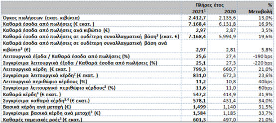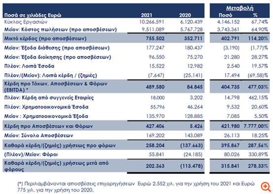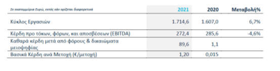 διαμορφώθηκαν το 2021 σε 286 εκατ. ευρώ, καταγράφοντας
