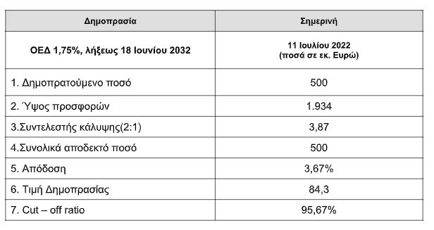 αερίου. Σημειώνεται ότι μέσα στον Ιούλιο 2022, η