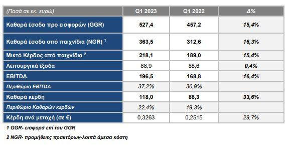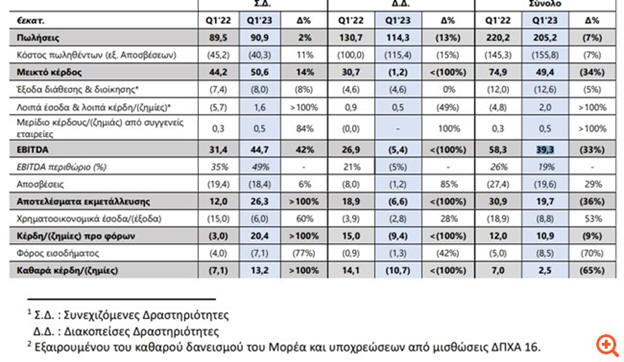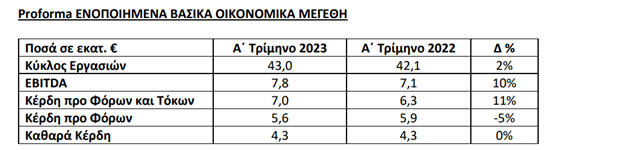 €228,8 εκατ. το Α’ τρίμηνο του 2023, αυξημένες κατά 0,4% σε