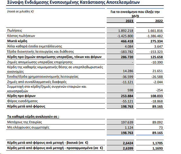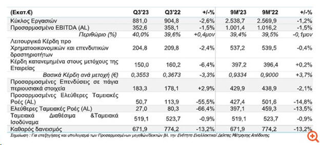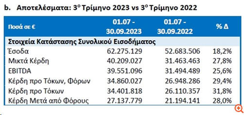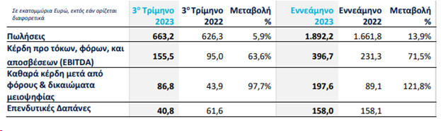 φόρων, τόκων και αποσβέσεων) του 9μήνου 2023 έφθασαν στα 937