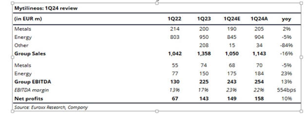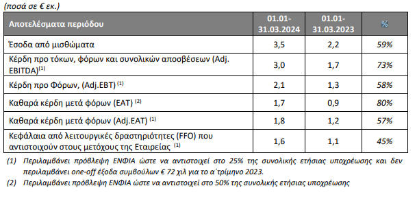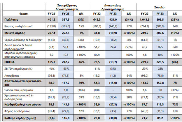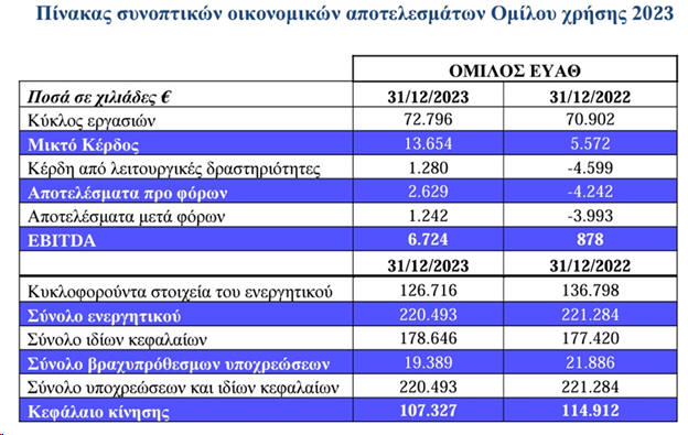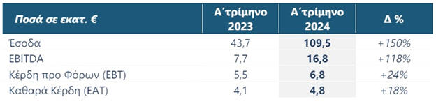 δισ. ευρώ, EBITDA 83,3 εκατ. ευρώ, κέρδη προ φόρων 58,9