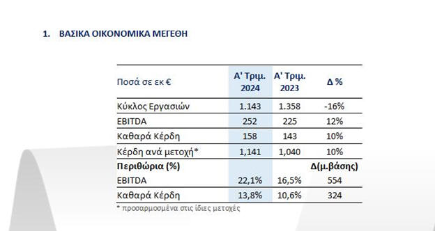 ωστόσο, ήπια ανάπτυξη σε όλα τα μεγέθη: πωλήσεις, EBITDA και