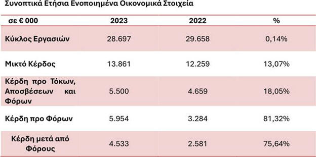 σύγκριση με το 2022, σημείωσαν αύξηση οι πωλήσεις κατά 16%,