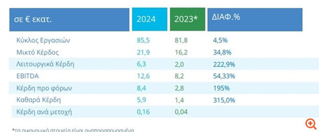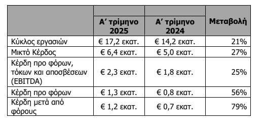 κέρδη προ φόρων (EBT) αυξήθηκαν κατά 53% στα €3,2 εκ. έναντι
