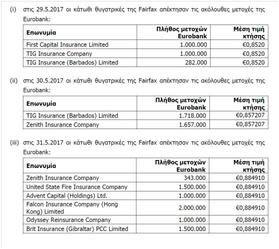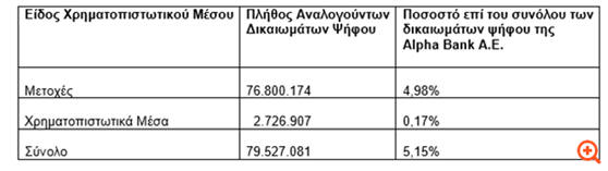 αναλογία μια νέα μετοχή της νέας εταιρείας για κάθε 1