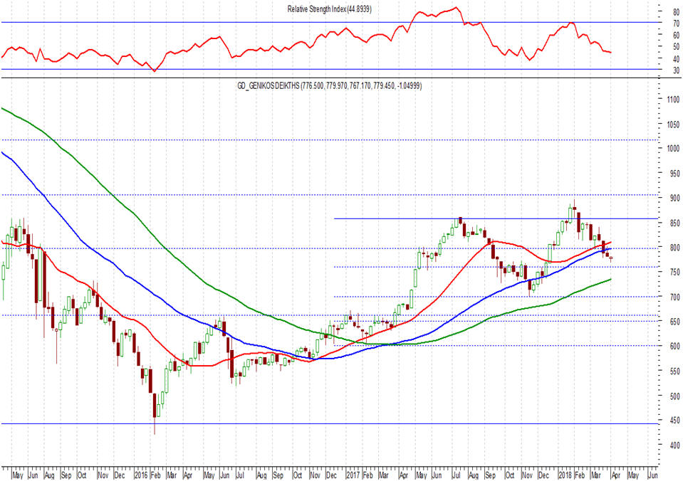 στήριξης στα επίπεδα των 780 μονάδων, με το ΓΔ να κλείνει