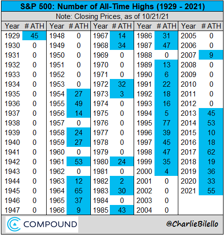 2021 55 φορές κατά τις οποίες η Wall Street ( S&P 500)