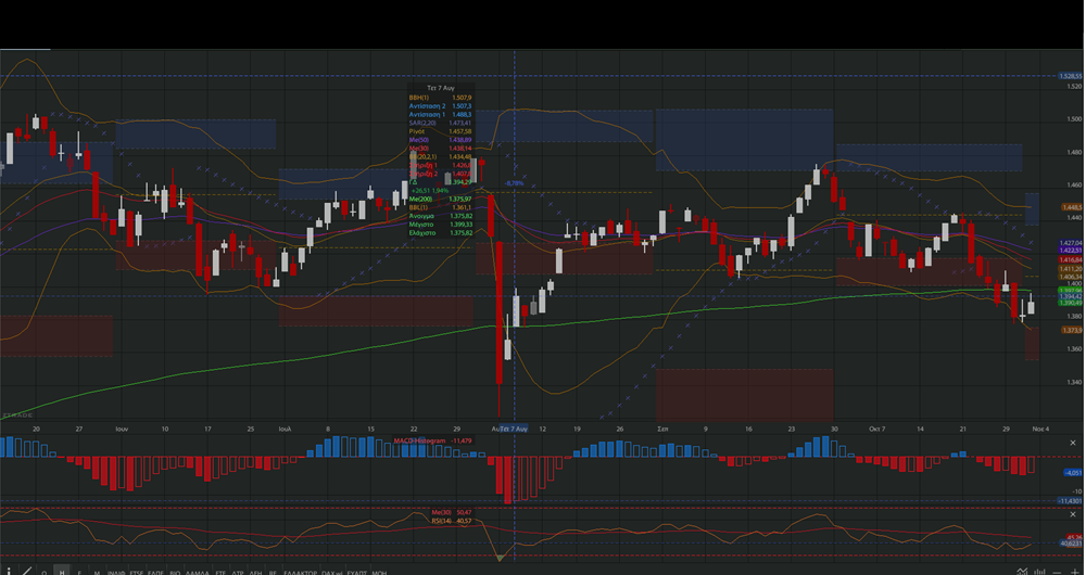 αντιστάσεις στις 1.430 – 1.440 μονάδες και 1.450 μονάδες.