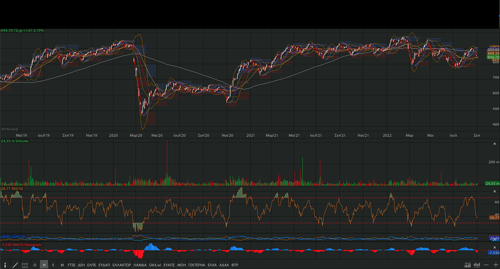 επόμενες ισχυρές στηρίξεις στις 800 – 790 και 780 μονάδες.
