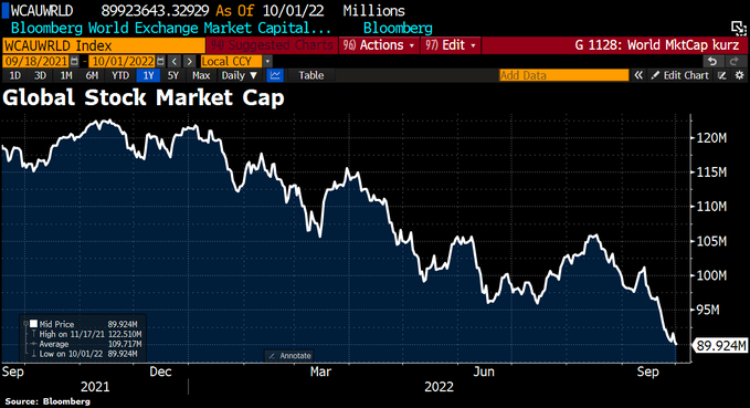Η συνολική κεφαλαιοποίηση των παγκόσμιων χρηματιστηρίων (περιλαμβάνει