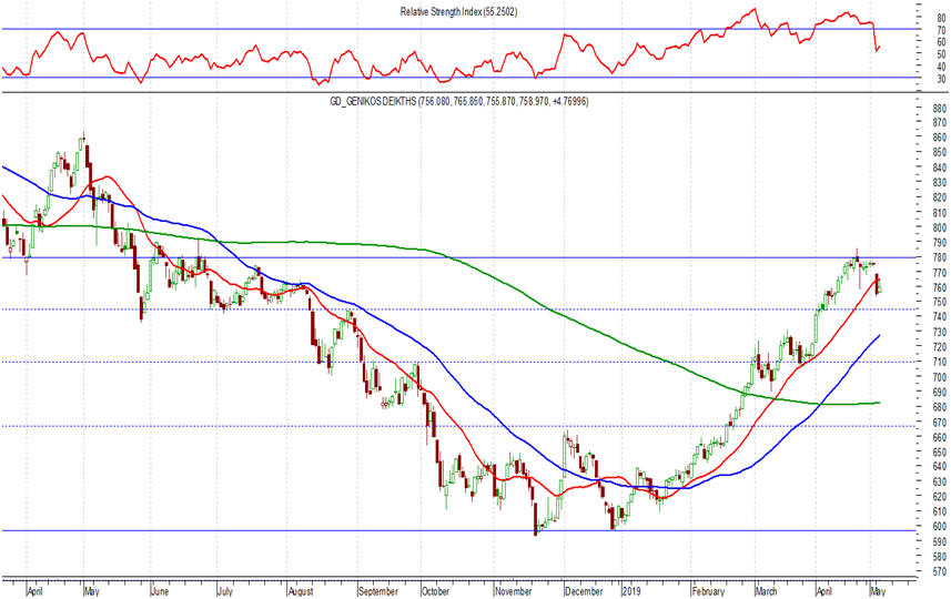 των 555 – 560 μονάδων, θα σήμαινε όσον αφορά το ΓΔ μια πτώση