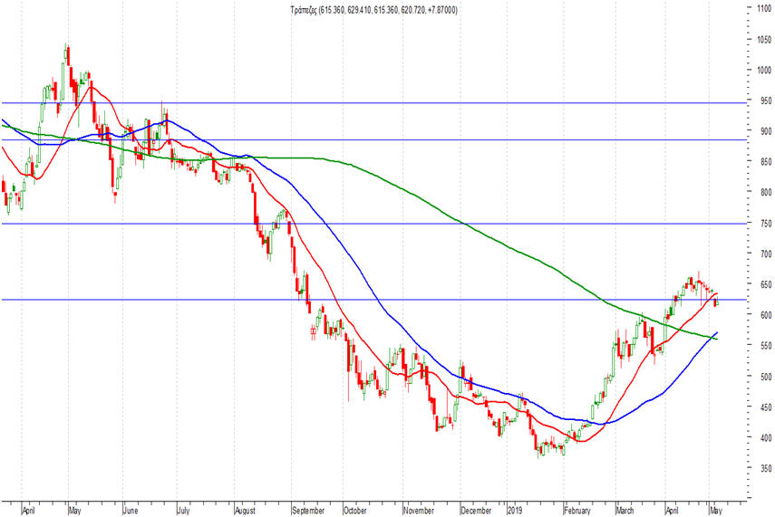 χαμηλό ημέρας οι 615 μονάδες). Στηρίξεις η απώλεια των