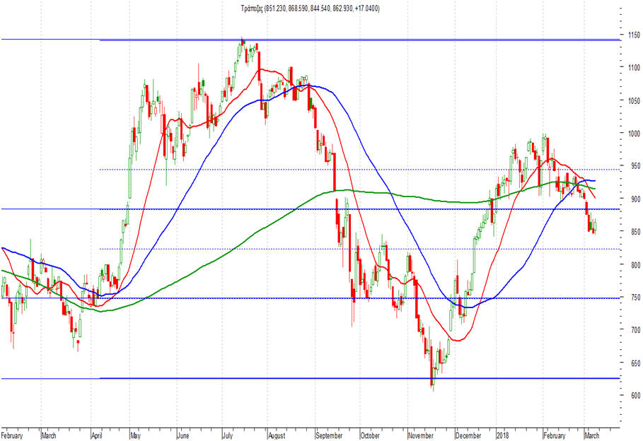 εικόνα είναι αυτή του τραπεζικού δείκτη, ο οποίος έκλεισε