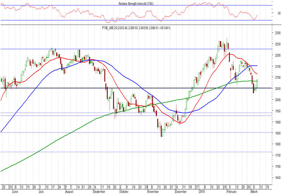 2.080 - 2.085 μονάδων, οριακά υψηλότερα των οποίων έκλεισε