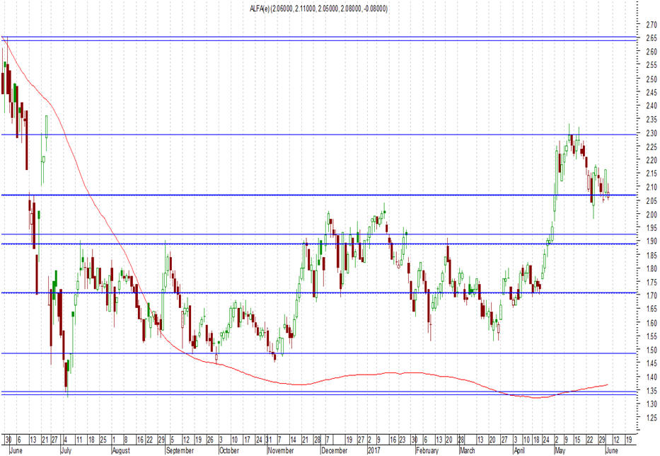 Στα 2,08 ευρώ (+1,46%) έκλεισε την Πέμπτη η μετοχή της Alpha
