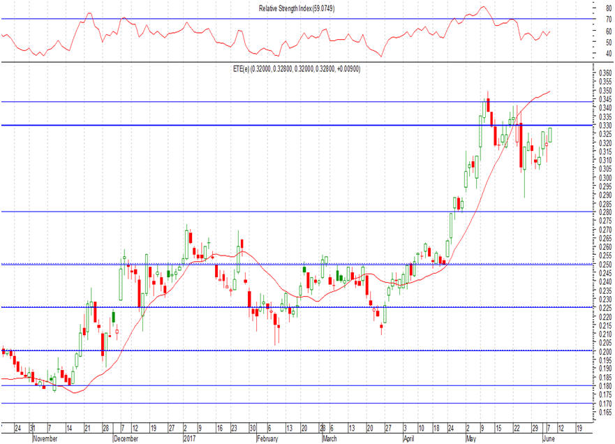 αντιστάσεις των 0,34 – 0,342 ευρώ, επίπεδα στα οποία 3 φορές
