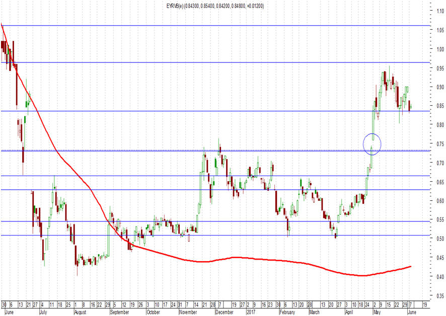 οδηγήσει τη μετοχή στα υψηλά του Μαΐου του 2016, στα 1,17 –
