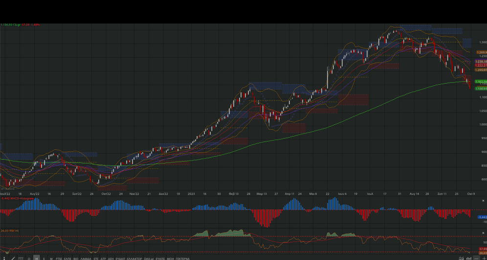 κρίσιμες στηρίξεις στα επίπεδα των 1.140 – 1.160 μονάδων, θα