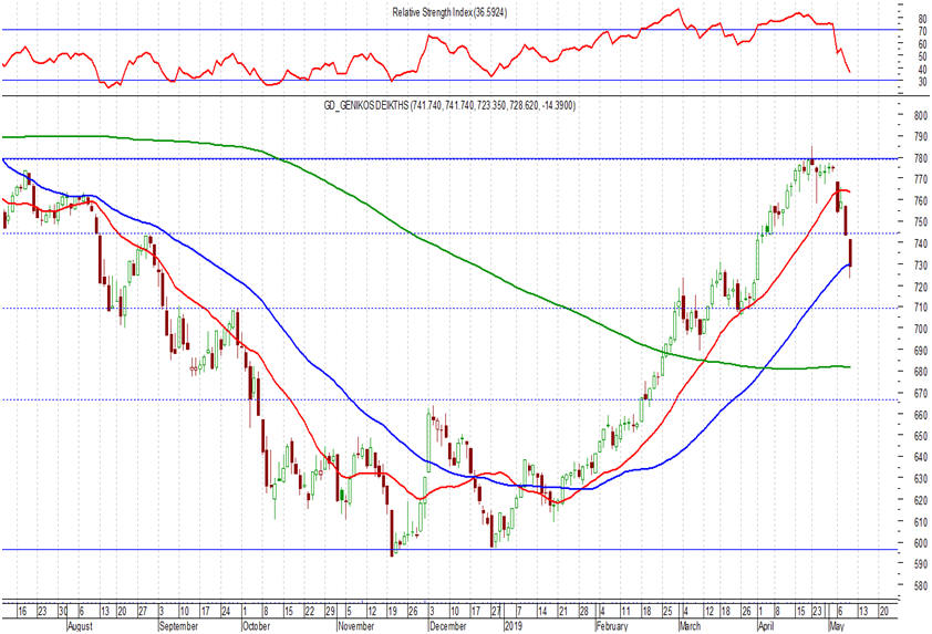 ο ΓΔ έκλεισε χθες στις 728,62 μονάδες, -1,94%, με ισχυρές