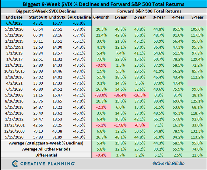 μετά από τις μεγαλύτερες πτώσεις του VIX είναι συνήθως