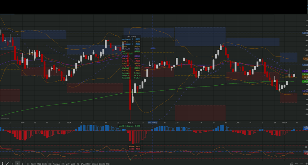επόμενες αντιστάσεις στόχος στα επίπεδα των 1.430 – 1.440