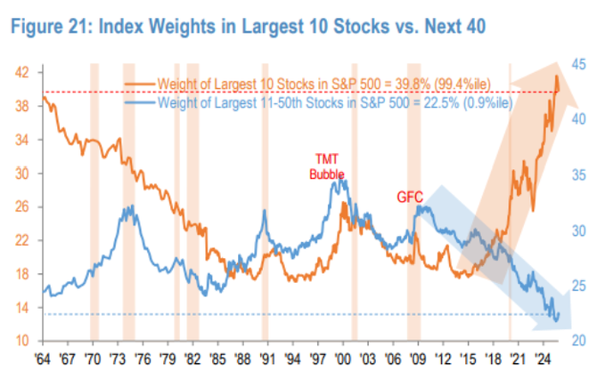 10 μεγαλύτερες μετοχές αποτελούν σχεδόν το 40% του S&P 500,