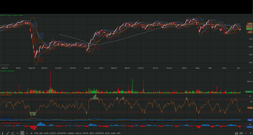 κρίσιμων στηρίξεων στα επίπεδα των 840 – 850 μονάδων. Ένας